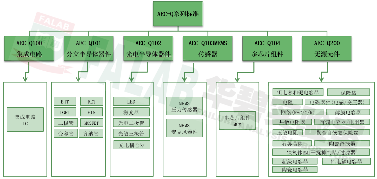 1994 年,克萊斯勒、福特和通用汽車三大主機廠為建立一套通用的零件資質及質量系統標準而設立了汽車電子委員會 AEC(Automotive Electronics Council),符合 AEC 規范的零部件均可被三家車廠同時采用。此舉推動了汽車零部件通用性的實施,為車載電子市場的快速增長奠定基礎。目前AEC會員遍及全球各大汽車廠與汽車電子和半導體廠商,AEC-Q為AEC組織所制訂的車用可靠性測試標準。