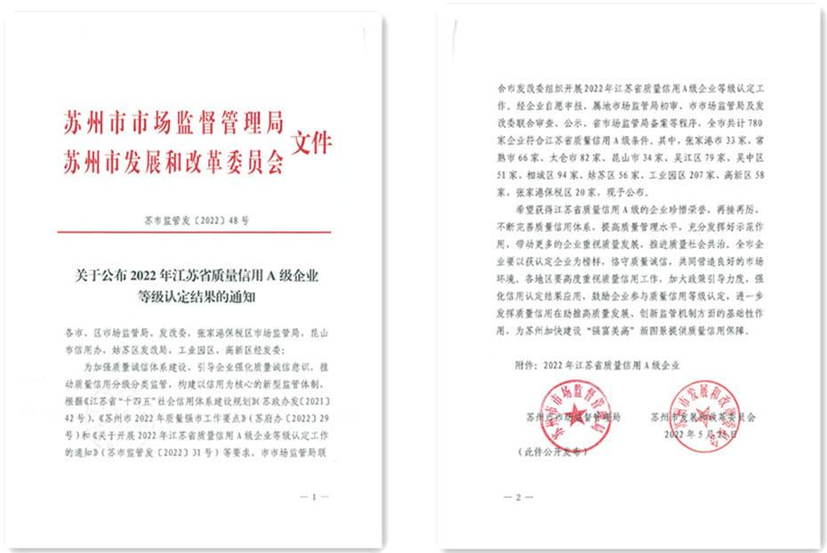 為了加強質量誠信體系建設,引導企業強化質量誠信意識,推動質量信用分級分類監管,構建以信用為核心的新型監管體制。近日,蘇州市市場監管局聯合蘇州市發改委發布了《2022江蘇省質量信用A級企業等級認定結果》,蘇州華碧微科檢測技術有限公司成功上榜,并獲評“江蘇省質量信用等級A級企業