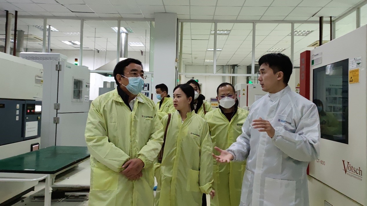 顏景林向來訪領導詳細介紹了華碧的發展歷程、司法鑒定領域的* 新進展和新材料研發的成果,尤其是卷對卷柔性鈣鈦礦太陽能電池產品,現場展示了產品生產工藝和流程。